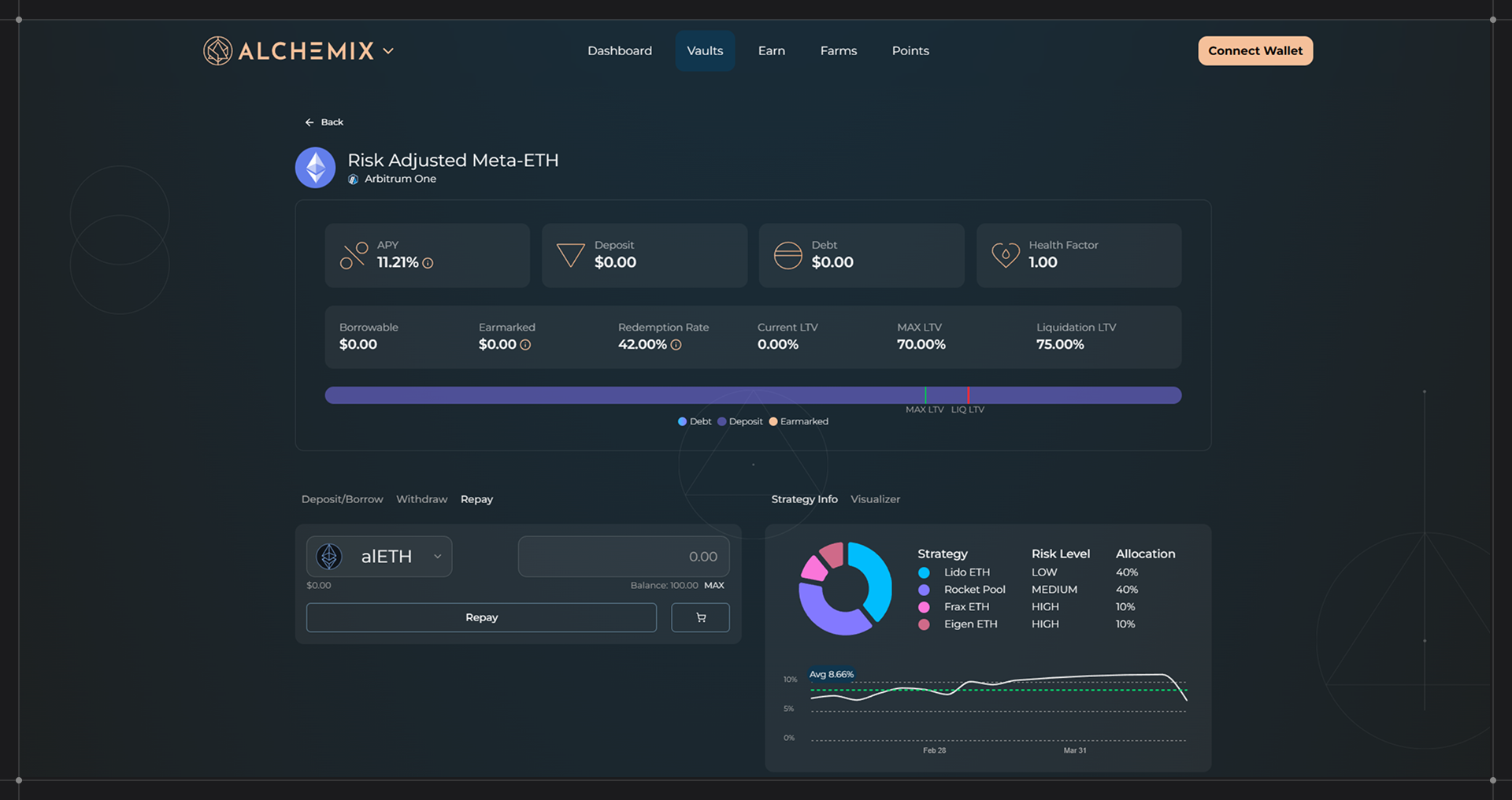 The Repay tab accepts three asset types: alAssets, MYT, or the underlying token. You can use whichever is most convenient or cheapest at the moment.